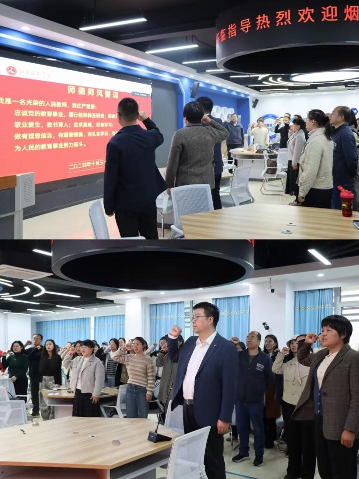 会议深入探讨了教育家精神的核心价值,并强调了新时代教师队伍建设的重要性。为提升教师专业素养和教学能力,学院提出树立榜样、加强培训、完善制度保障及鼓励创新等策略。期间,徐万肖、李洋和杨辰兴老师分别领学了高校教师职业行为准则、师德失范处理意见及警示案例,增强了师德建设的责任感。老师们还观看了李平教授的感人事迹短片,深受鼓舞。最后,在副院长冯亮的带领下,全体老师重温了师德师风誓词,庄严承诺牢记党的教育方针,争做“四有”好老师,为培养全面发展的社会主义建设者和接班人而不懈奋斗。