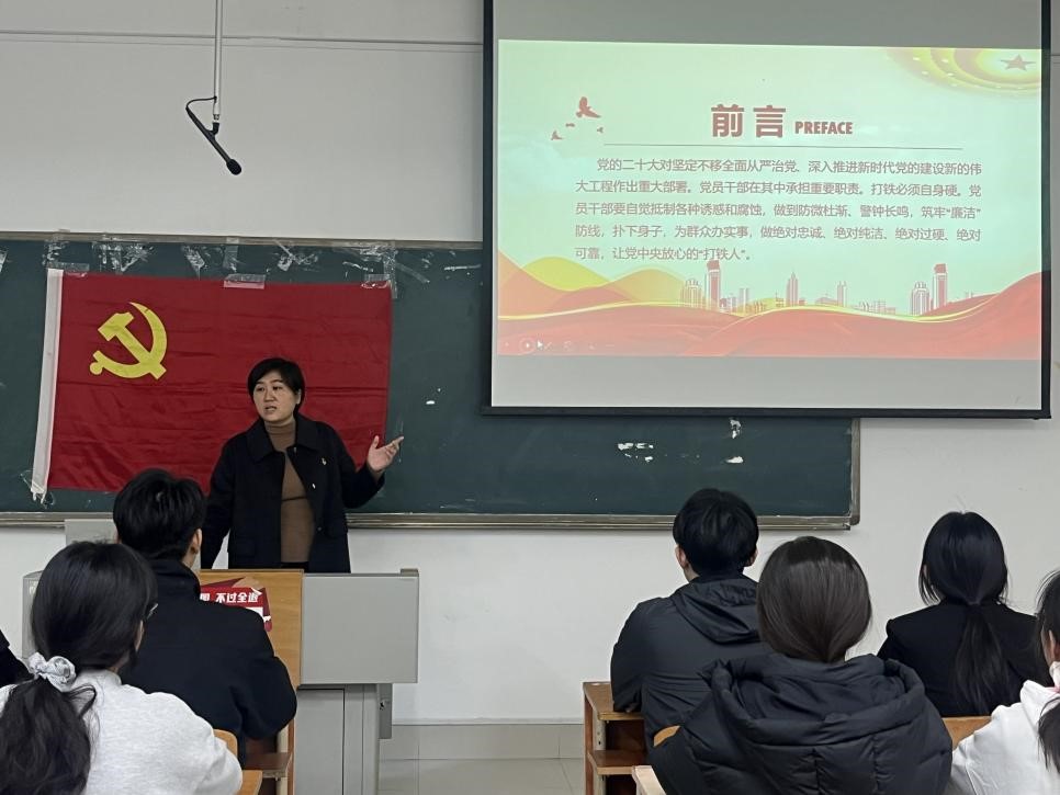 党支部书记孔圆圆以“永葆廉洁本色 让青春在新时代绽放绚丽之花”为题,为大家做专题党课,大家对廉洁文化建设有了更加深刻的认识。师生党员一致认为,在今后的工作学习中,要深入学习贯彻党的二十届三中全会精神,认真学习《中国共产党纪律处分条例》,做到廉洁修身、廉洁持家,勤勤恳恳做事,干干净净做人,扑下身子为群众办实事,始终保持忠诚、干净、担当,为学校高质量发展持续贡献力量。