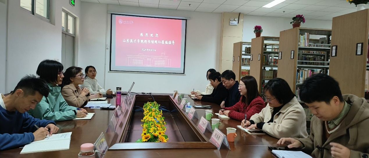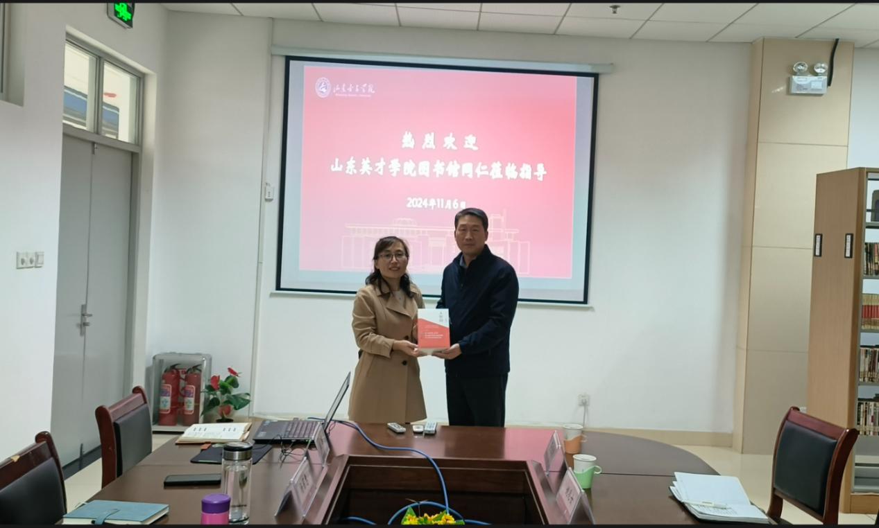 11月6日,山东英才学院图书馆馆长朱居正、副馆长张华一行六人到学校图书馆调研交流,图书馆馆长李霞、副馆长宋军风及各部室主任陪同参观交流。