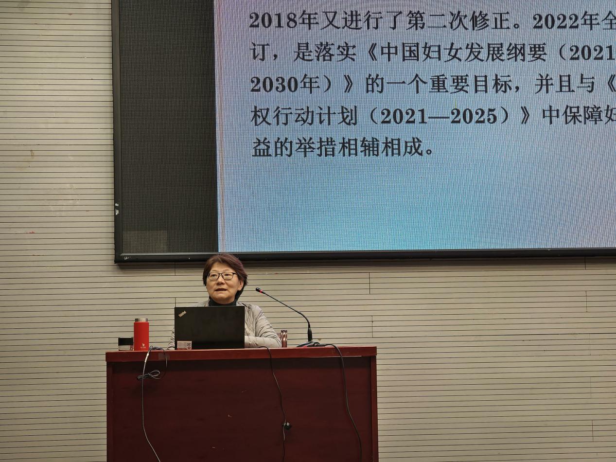 张雅维教授解读了新修改的《中华人民共和国妇女权益保障法》及女性的生育、就业、人身权利等方面的法律。拓宽了同学们的学术视野,提高了自身法律意识和维权能力。