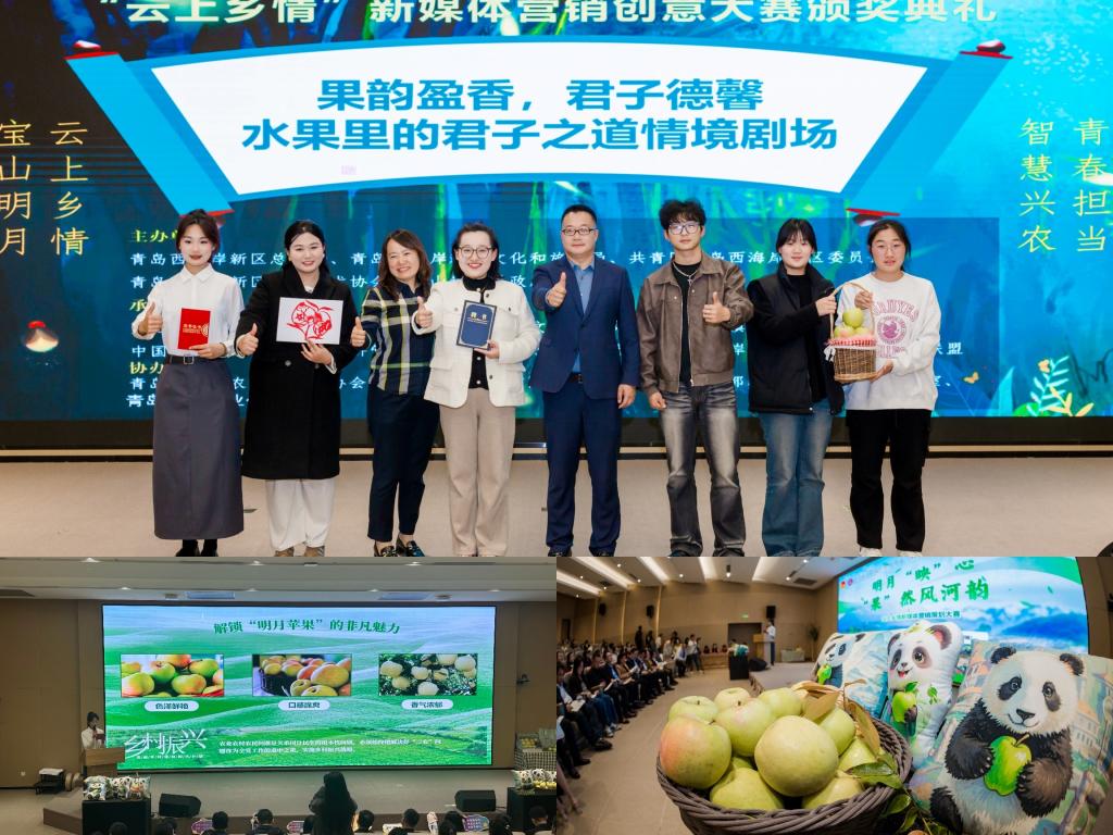 本次大赛聚焦“青春担当,智慧兴农;云上乡情,宝山明月”主题,以文化创意赋能乡村振兴,为提升西海岸新区农业品牌价值和市场竞争力提供典型案例。“经”彩青年志愿服务团队依托学院数字经济人才培养优势,联动学院教工第一党支部开展校地共建,深入宝山镇发掘“宝山明月苹果”的品牌文化内涵,设计新媒体推广营销方案,制作营销视频在抖音平台累计浏览量超七千次,斩获大赛二等奖。“经”彩青年志愿服务队受聘为西海岸新区乡村振兴推介官。
