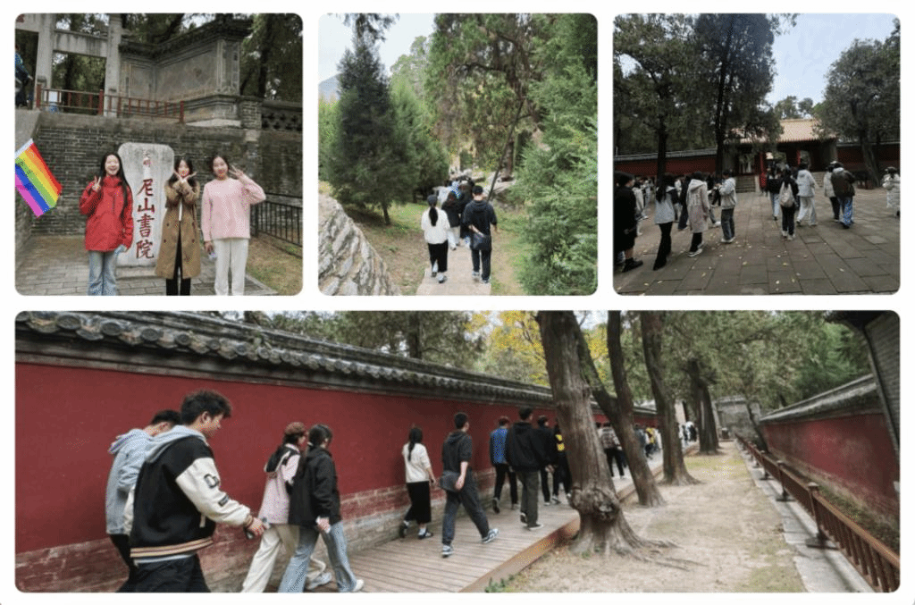 尼山孔庙,这里作为儒家礼制建筑的代表,依山而建,古老的苍松之间,飞檐翘脊若隐若现,营造出一种东方式的静谧情调和神秘氛围。在这里,同学们漫步于古建筑之间,体悟圣人的智慧,汲取文化的力量。