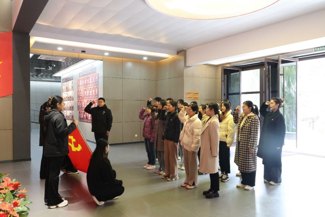 参观学习结束后,全体党员面向党旗高举右拳,重温入党誓词。随后在徂徕山烈士陵园公墓前鞠躬默哀,并向烈士敬献花篮。