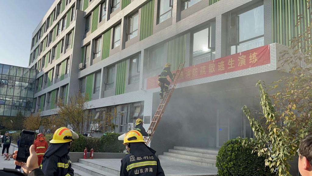为进一步提升师生员工消防安全素质,提高消防安全风险意识和突发火灾应急处置能力,开展好“119宣传月”各项活动, 11月21日下午,学校邀请济南市长清区消防救援大队来校联合开展消防逃生疏散演练活动。演练地点设定在在8号学生公寓,安全管理处、学生工作处、后勤保障处、各二级学院师生员工500多人参与。