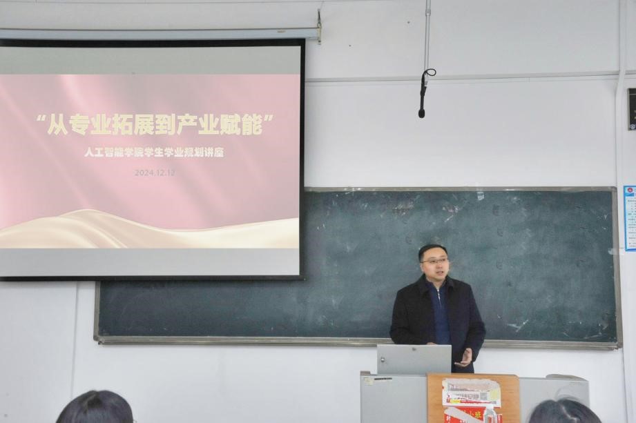 12月12日,人工智能学院开展了主题为“从专业拓展到产业赋能”的学业规划讲座。由学院王鲁教授主讲,学院辅导员老师及2023级、2024级部分同学参加。