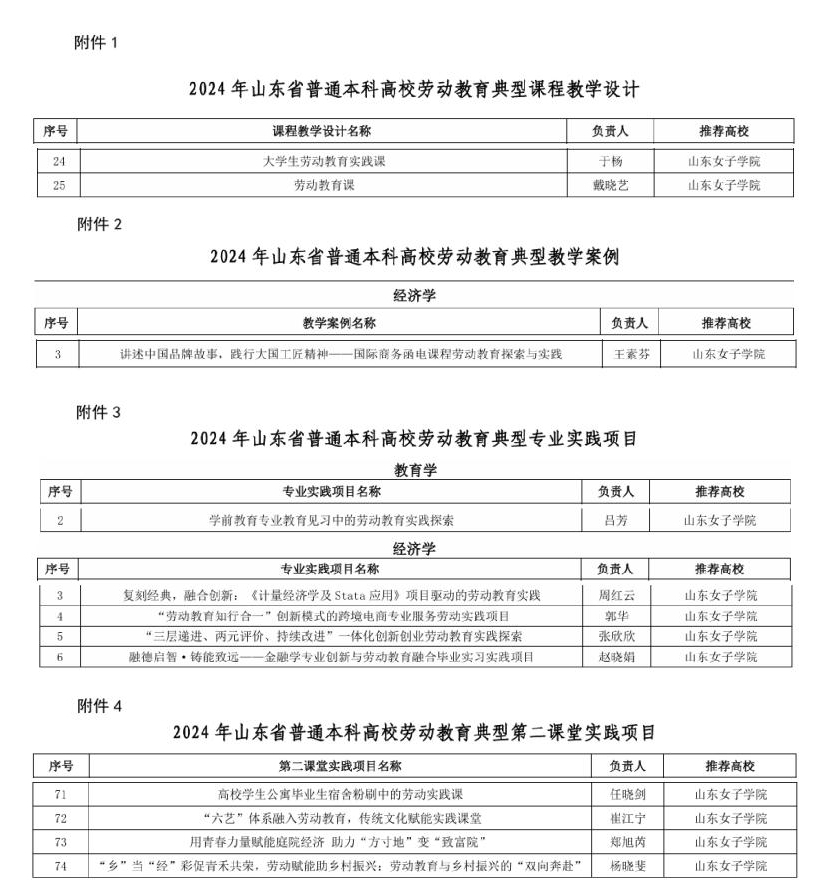 近日,山东省普通高等学校劳动教育教学指导委员会公布2024年山东省普通本科高校劳动教育典型课程教学设计、教学案例和实践项目遴选结果,学校申报的“高校学生公寓毕业生宿舍粉刷中的劳动实践课”等12个项目入选,其中,课程教学设计2项、教学案例1项、专业实践项目5项、第二课堂实践项目4项。