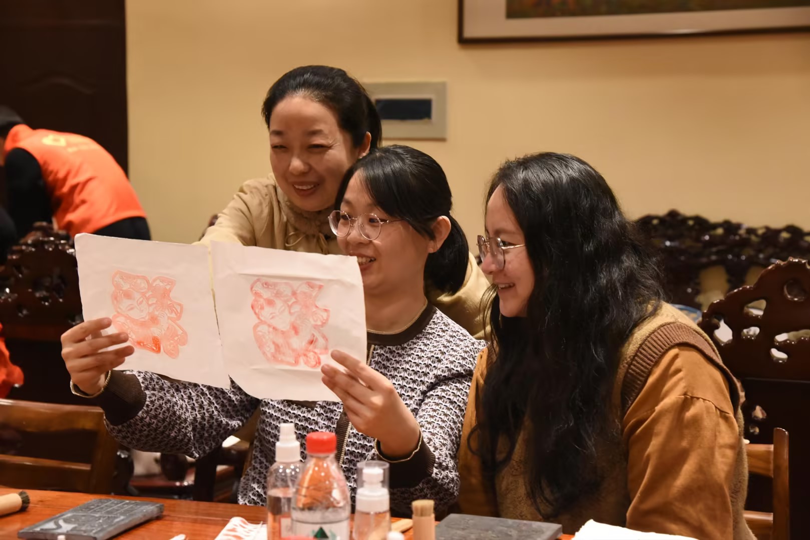 平安山庄社区党支部成员还参加了图书馆组织的庆祝“三八”国际妇女节非遗拓片体验活动。现场工作人员生动讲述非遗拓片技艺的传承故事,详细介绍制作技艺。在老师的指导下,大家铺纸、喷水、捶打、上墨,体验拓印魅力。活动现场气氛热烈,大家互相交流心得,分享喜悦,在欢声笑语中感受着传统文化的独特魅力。