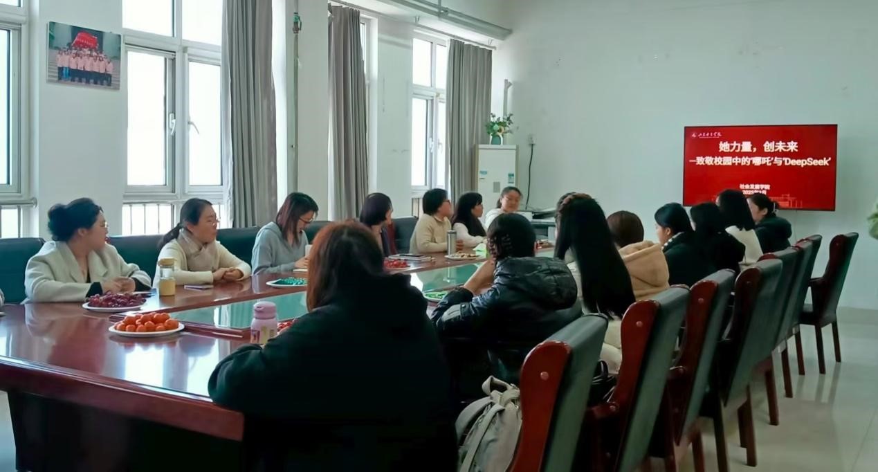3月 6 日,值三八国际妇女节前夕,社会发展学院成功举办“她力量,创未来 —— 致敬校园中的‘哪吒’与‘DeepSeek’”主题座谈会。此次活动聚焦女教职工领导能力与创新能力提升,同时助力女大学生明晰未来方向、实现自我突破。党委副书记吴玉霞、副院长王绍霞,女性学专业教师、辅导员以及女性学专业学生代表齐聚一堂,围绕女性力量的发展与传承展开深入交流。
