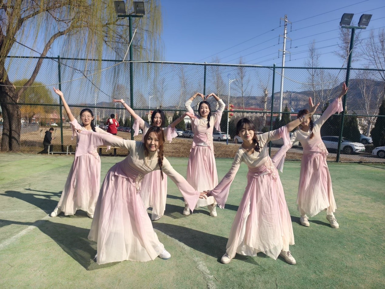 开幕式现场,天气有些微寒,但同学们的热情丝毫不减。她们身着精心准备的服装,在后台反复练习舞蹈动作,互相检查妆容,眼神中满是期待与紧张。随着欢快而富有节奏感的音乐响起,“童心圆”志愿者们轻盈地走上舞台。她们的脸上洋溢着自信的笑容,灵动而富有活力。舞蹈动作巧妙地融入了杏花绽放、随风摇曳等元素,将杏花的柔美与青春的朝气完美融合,深深吸引了台下观众们的目光。
