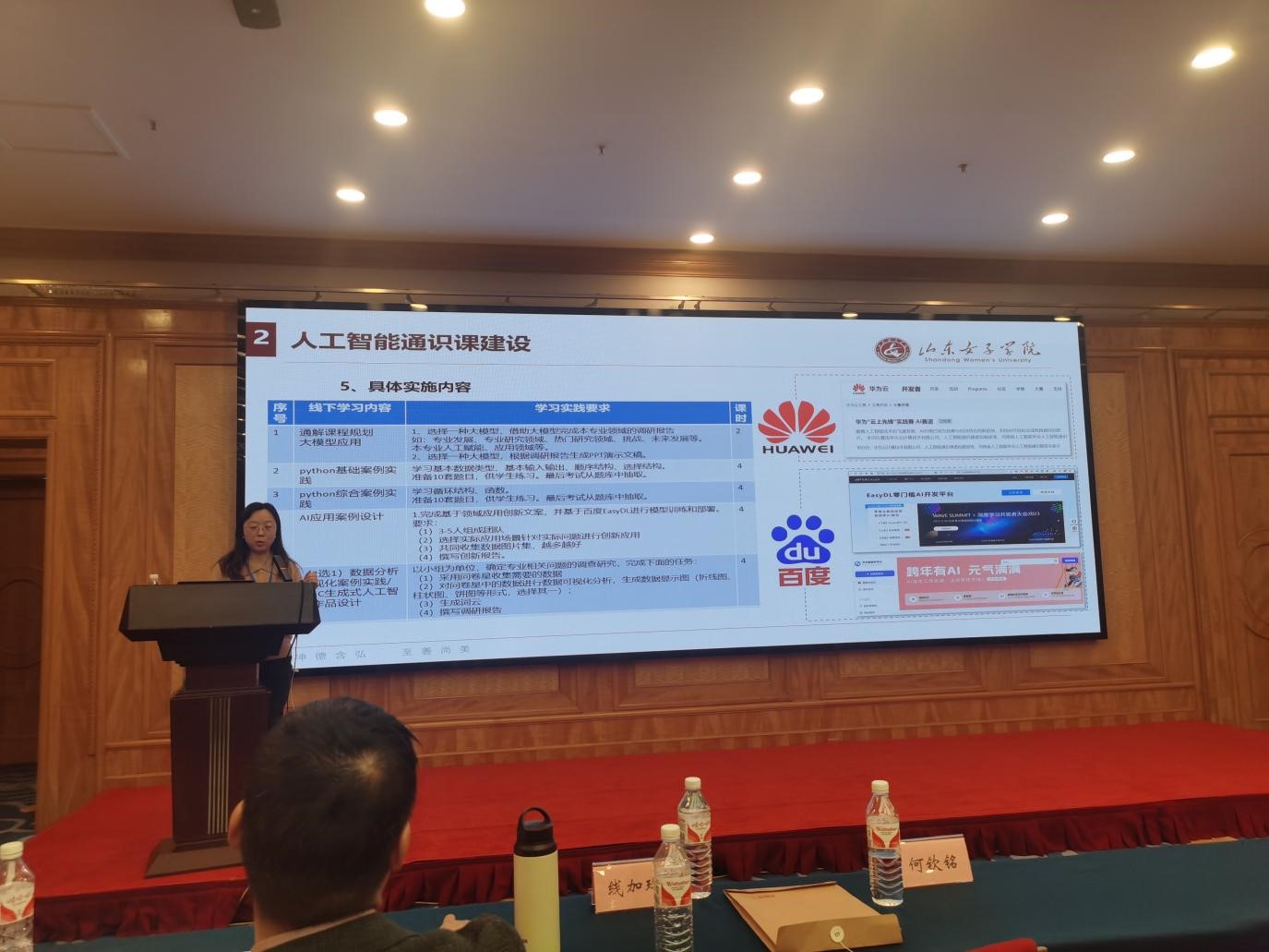 我校深度参与会议组织与学术交流。数据科学与计算机学院院长孙洪峰教授担任"人工智能通识教育实践"专题论坛主持嘉宾,刘丽教授以"创新导向,数智赋能——人工智能通识教育校本实践"为题作专题报告,重点介绍我校首创的《人工智能基础与应用》通识必修课建设经验。该课程构建了“数智技术赋能-产教协同育人-实践能力筑基-创新机制引领”四维一体创新教学模式,相关成果引发与会专家热烈讨论。
