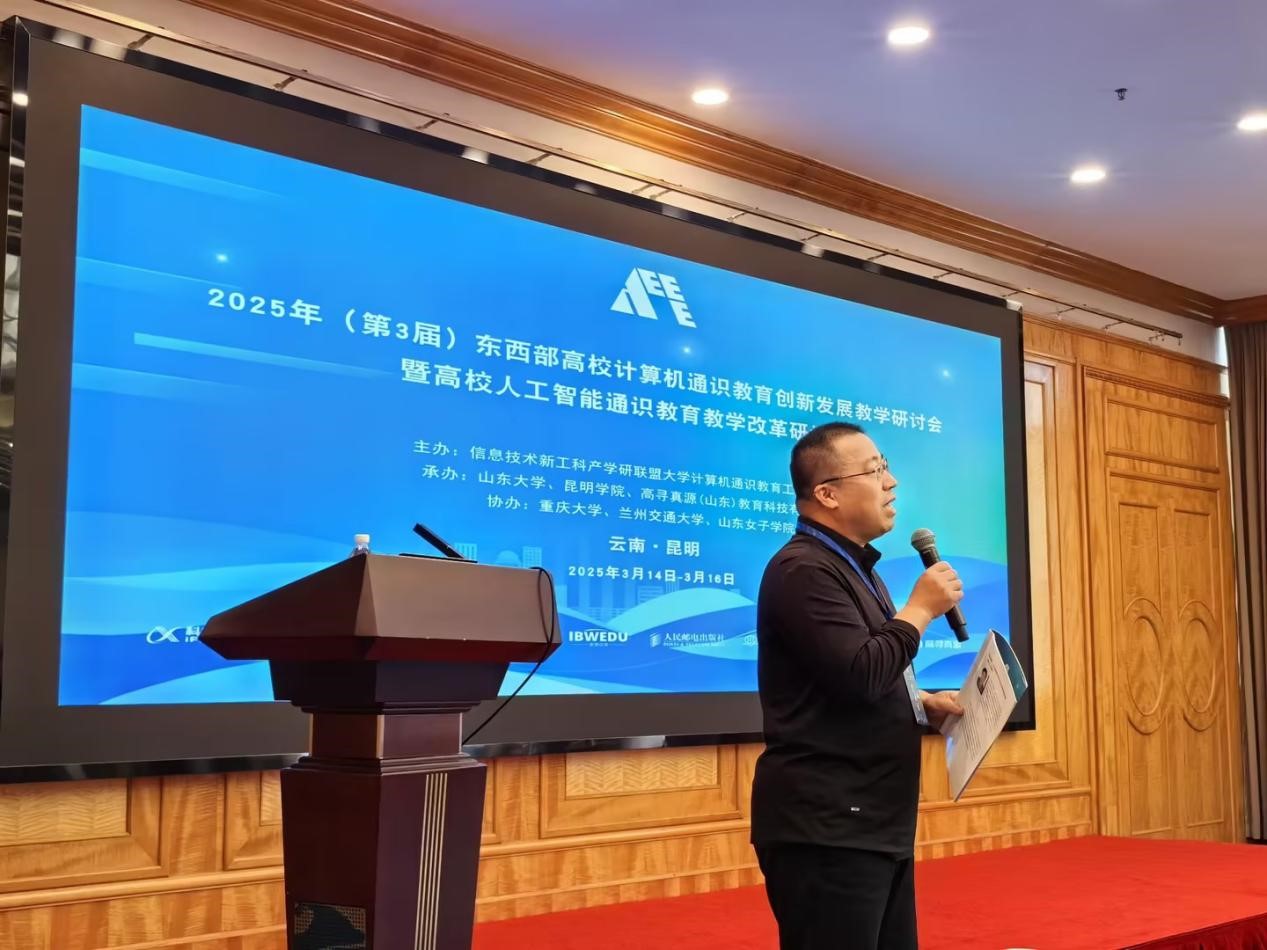 3月14日至16日,由信息技术新工科产学研联盟主办,山东大学、昆明学院联合承办,我校协办的"第三届东西部高校计算机通识教育创新发展教学研讨会暨人工智能通识教育教学改革研讨会"在春城昆明圆满召开。本次会议汇聚了来自全国50余所高校及科大讯飞、龙芯中科等头部企业的百余位专家学者,围绕人工智能通识教育改革展开深度对话。
