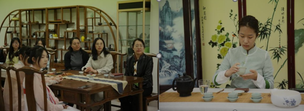 千年古韵焕新彩,茶会以一场“大益八式”茶艺表演拉开序幕。大学生茶道艺术团成员通过“洗尘、坦呈、苏醒、法度、养成、身受、分享、放下”八道严谨工序,完整的向师生们呈现传统茶道“天地人和”的哲学理念。在“茶舞对话”环节中,舞者以古典舞《怎叹》为载体,通过水袖、折腰等传统舞蹈语汇,艺术化再现采茶、制茶、品茶的劳动场景。