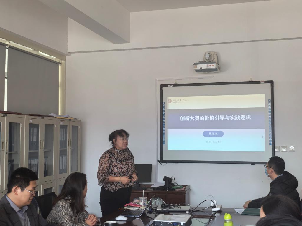 为推进创新创业教育提质升级,提升教师创新指导能力,3月20日下午,传媒学院开展“传媒大讲堂”系列活动——创新创业大赛指导专题培训。本次活动特邀创新创业学院教研室主任焦亚冰主讲,学院领导班子成员及全体教师参加培训。培训由院长李百晓主持。