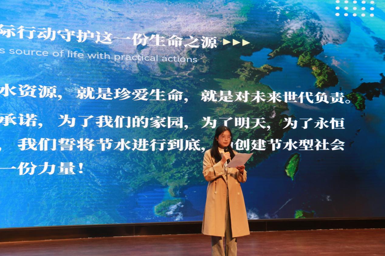 宣教会互动环节中,2024 年校园节能环保公益大使郭芸帆同学分享了她的节水心得。她讲述自担任公益大使以来,积极投身于学校各类节能环保活动,这些经历让她深刻体会到节能环保、绿色低碳的重要意义。她倡议同学们勇做校园 “显微镜”,关注师生用水节水细节;勇做“扩音器”,积极传播节水必要性和意义;勇做“连接器”,组建跨学科节水联盟,吸引明升赌场同学加入节水行列。