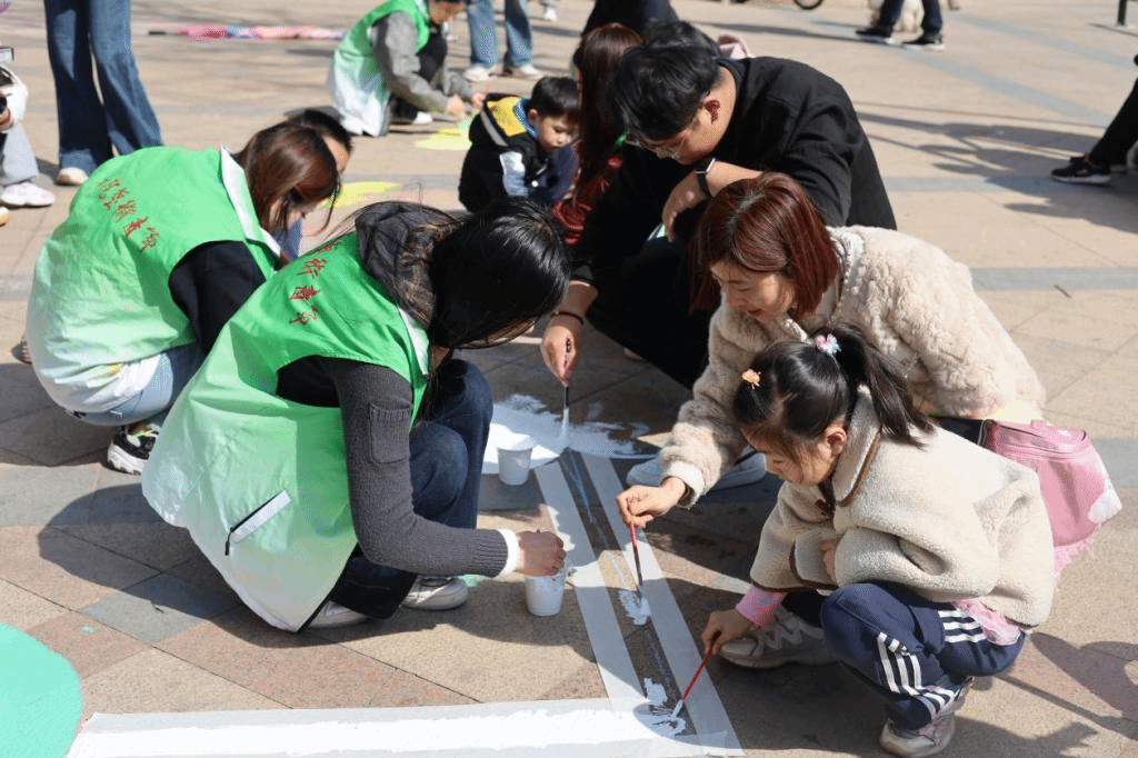 在小区游乐广场的闲置空间,物业工作人员带领志愿者与孩子们开展地绘创作。他们将二十四节气与游乐设施巧妙融合,在地面绘出色彩鲜艳的 “跳房子” 图案,用活泼灵动的设计为色彩单调的地面注入活力,引得居民纷纷驻足观望。这场活动营造出浓厚的社区艺术氛围,让每个人都在其中感受到社区的温暖,享受艺术带来的乐趣,助力打造温馨和谐的社区环境。