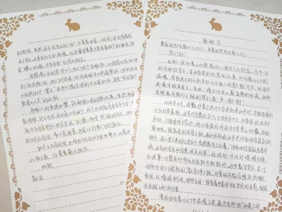 为深化资助育人成效,培养学生感恩意识与社会责任感,引导广大学生诚信立世、感恩做人、奉献社会,社会发展学院面向获得助学金的学生开展“感恩有你”主题书信活动,鼓励受助学生以纸笔为介,倾诉感恩之心,传递奋进力量。