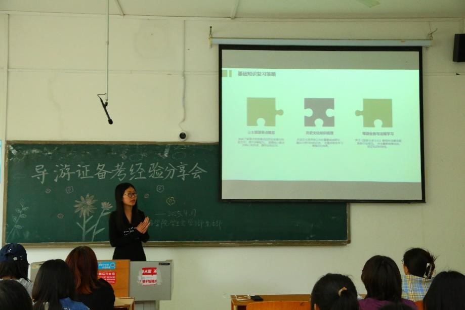 为提升学生备考导游证的积极性,增强备考的针对性,旅游学院近日举办导游证备考经验分享会。