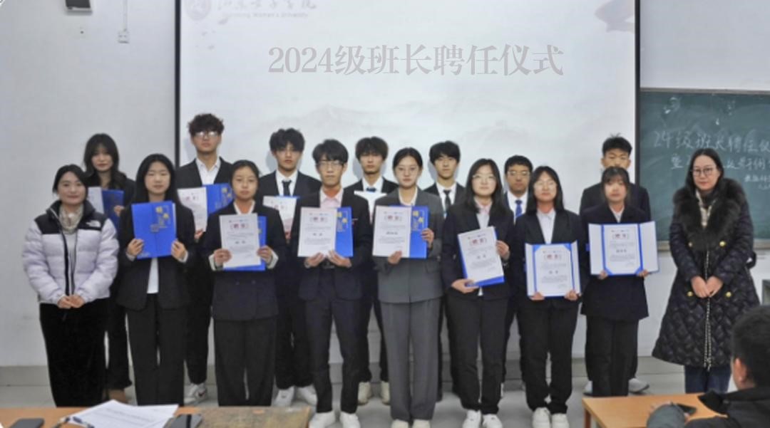 聘任仪式上,学院为2024级新生班长郑重颁发聘书。这不仅是一份荣誉,更是一份沉甸甸的责任,激励班长们以专业为根基、以服务为宗旨,在实践中锻造担当魄力、沟通智慧与创新思维,勇做班级发展的“领头雁”。