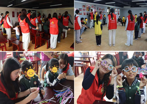 活动伊始,志愿者带领孩子们进行了趣味热身运动,确保孩子们以最佳状态投入后续活动。在“颜色蹲”环节,孩子们跟随志愿者发出的相应颜色指令迅速做出下蹲动作,通过指令互动,孩子们在轻松的氛围中锻炼了反应能力,更在色彩的转换中激发了他们的思维活力。“扭扭棒创意工坊”环节备受儿童们喜爱。在志愿者的引导下,孩子充分发挥想象力,将手中一根根普通的扭扭棒变成了一件件独一无二的艺术品,每一个作品的完成都承载着孩子们的奇思妙想。