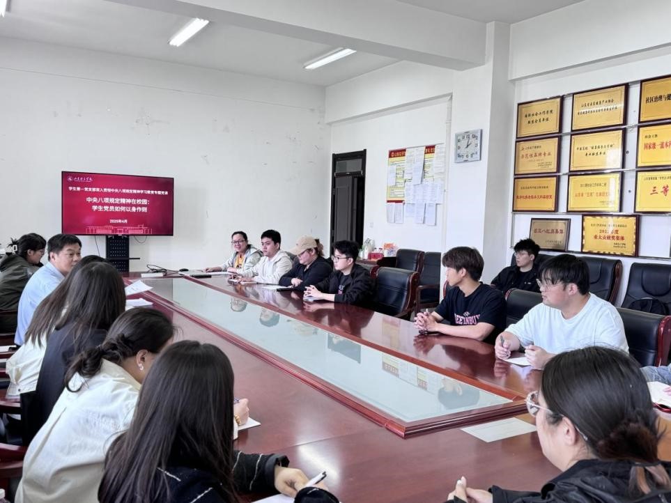 在学生党支部会议中,学生党员紧密结合校园实际,围绕中央八项规定精神核心要义展开热烈讨论。会议强调,学生党员要在学习、工作和生活中发挥先锋模范作用,坚决摒弃学习上的形式主义,树立求真务实的学习态度;保持清正廉洁的生活作风,抵制不良风气,维护校园公平正义;积极主动做好中央八项规定精神的传播者,以实际行动营造风清气正、积极向上的校园文化氛围。