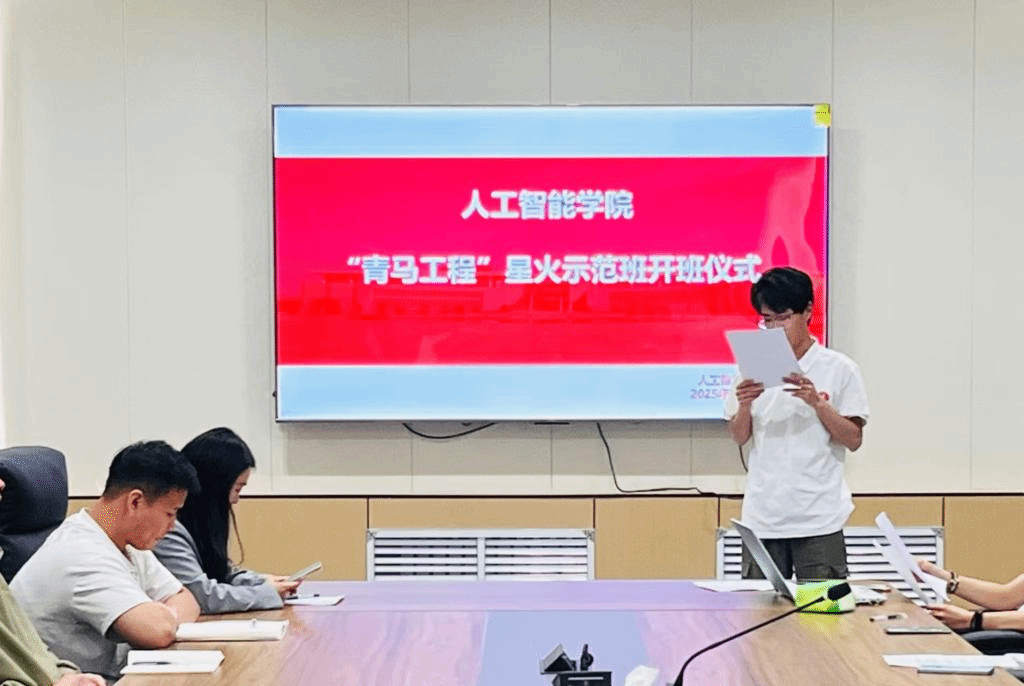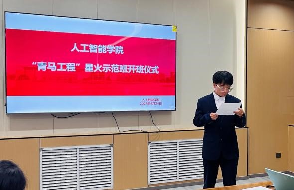 4月25日,人工智能学院举行“青马工程”星火示范班开班仪式。活动由学院辅导员韩新虹主持,学校“青马工程”培训班学员以及各班团支书共同参加。