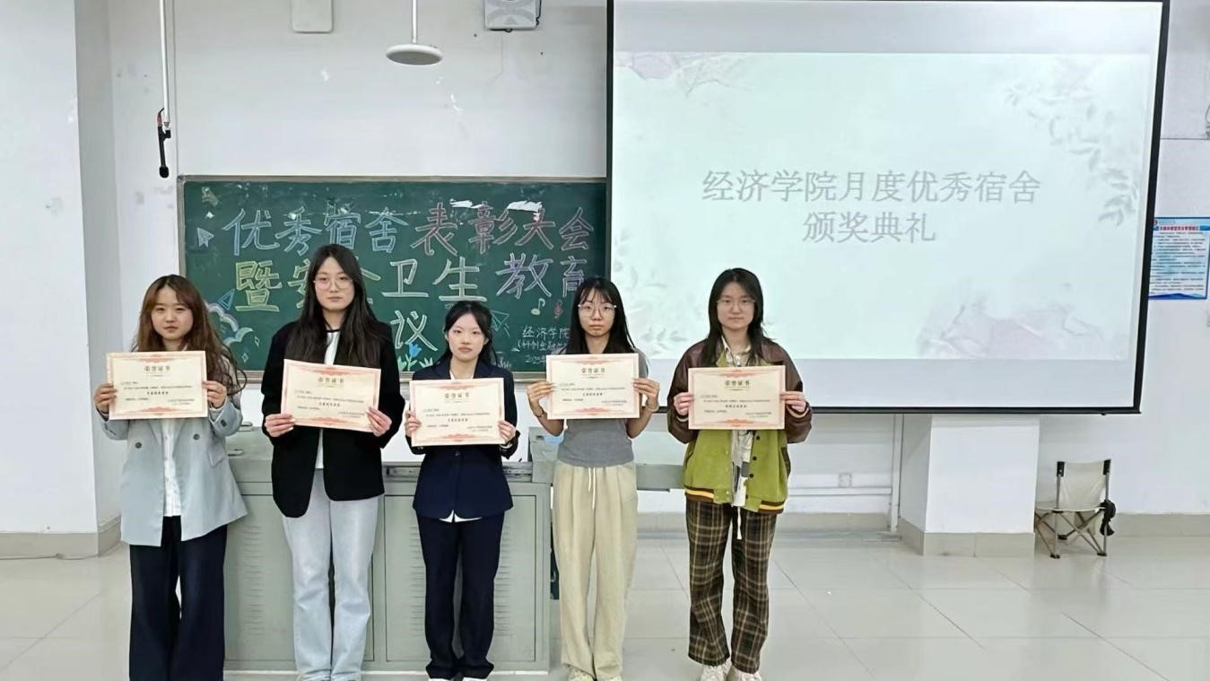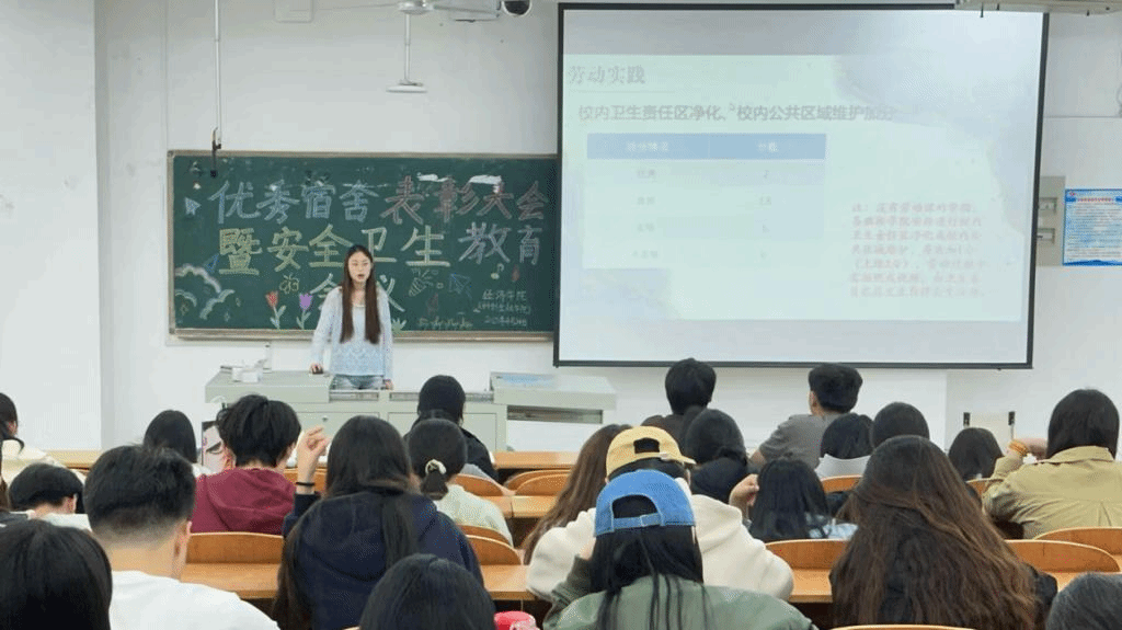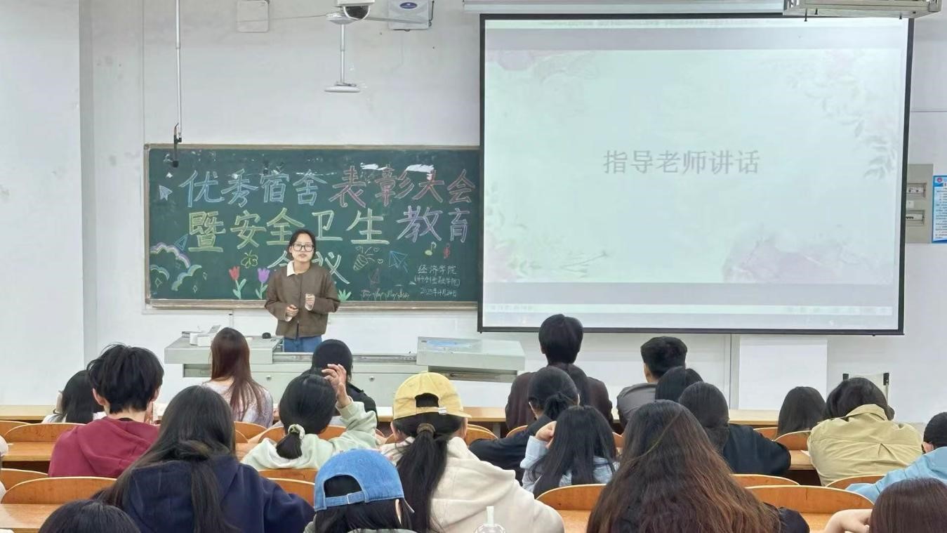 为加强学生公寓文明建设,筑牢安全根基,经济学院(科创金融学院)于4月24日召开2024-2025学年第一学期优秀宿舍表彰大会暨安全卫生教育会议,辅导员张倩倩、各宿舍舍长和各班卫生委员参加此次会议。