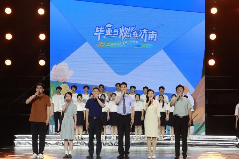 5月22日,“毕业当燃在济南”2025届济南市大学生毕业典礼在济南奥体中心东荷体育馆中心举行。山东省委常委、济南市委书记刘强出席活动并向毕业生们发出“青春邀约”。我校师生代表90人受邀参加典礼,学校2名优秀毕业生上台分享。