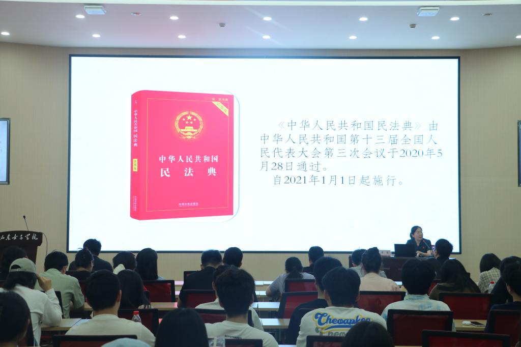 李敏法官凭借其审理3000余件民刑事案件的丰富经验,通过一个个生动的案例剖析,深入浅出地讲解了个人信息保护、网络购物、房屋租赁合同等与师生学习生活息息相关的法律问题,不仅揭示了隐患风险,更提供了切实可行的维权路径。特别针对校园网贷、网络诈骗等热点现象,结合《民法典》相关条款进行了专业解读,为大学生日常生活中的法律困惑提供了切实可行的解决方案,引导同学们建立“事前防范、事中存证、事后维权”的法治思维链条。