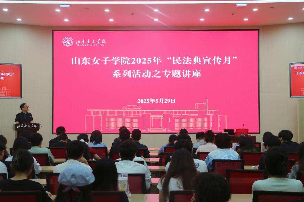 为深入学习贯彻习近平法治思想,扎实推进“八五”普法工作,5月29日下午,由学校法律事务办公室主办的2025年“民法典宣传月”系列活动之“法护青春岁月 护航大学生活”专题讲座在求真楼报告厅举行。济南市长清区人民法院大学城人民法庭庭长李敏法官应邀作专题报告,学校机关党委书记兼法务办主任许冰主持,长清区人民法院审判委员会专职委员冯建法官、学校总法律顾问许永成律师与150余名师生代表参加活动。