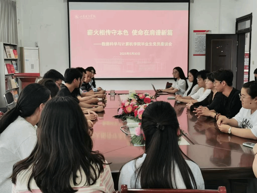 为强化毕业生党员思想政治教育,引导其在新征程中严守纪律规矩、践行使命担当,5月30日,数据科学与计算机学院召开毕业生党员座谈会。学院党委书记张明、副书记于泽汇与全体毕业生党员齐聚一堂,共话成长,展望未来。