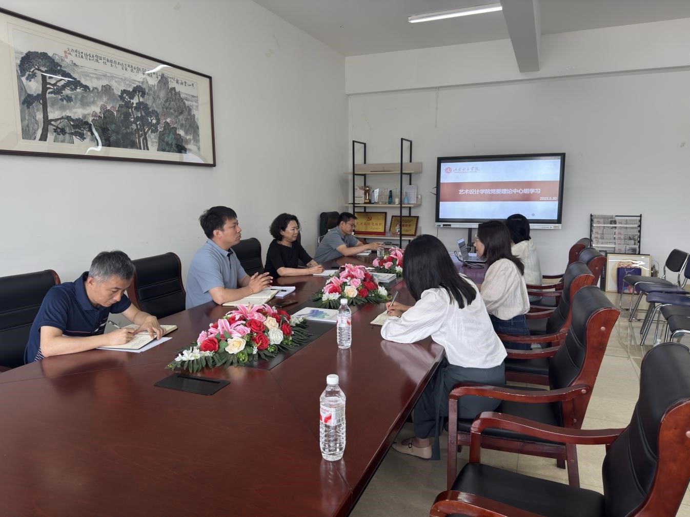 5月30日,艺术设计学院党委理论学习中心组在求真楼306会议室,开展深入贯彻中央八项规定精神学习教育专题学习。学院党委理论学习中心组成员参加会议。会议由党委书记颜涛主持。