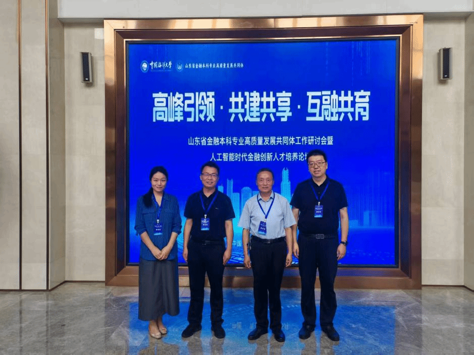 6月28日,山东省金融本科专业高质量发展共同体工作研讨会暨人工智能时代金融创新人才培养论坛在中国海洋大学召开。本次会议由山东省金融本科专业高质量发展共同体秘书处主办,中国海洋大学经济学院与山东财经大学金融学院共同承办,聚焦人工智能时代金融创新人才培养的前沿议题,吸引了省内外高校及行业专家齐聚一堂。学校经济学院院长沈传河、副院长冯亮、崔俊富及金融学教研室主任赵晓娟一行受邀参加。
