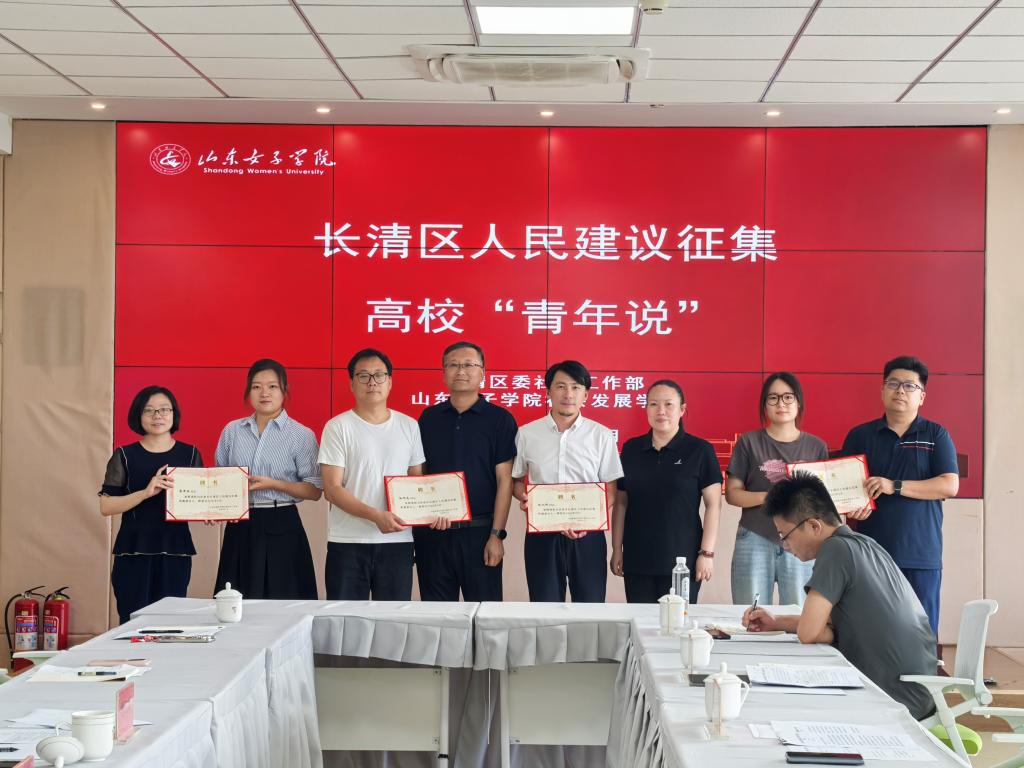 在首先开展的人民建议征集区级直报点授牌及特邀建议人聘任仪式上,社会发展学院作为代表被授予长清区人民建议征集直报点标牌,孙旭友、赵记辉、苏泽西及尹星宇四名师生受聘特邀建议人。随后,与会人员特别是青年大学生围绕长清大学城周边社会治理存在的问题展开思考并提出建议。