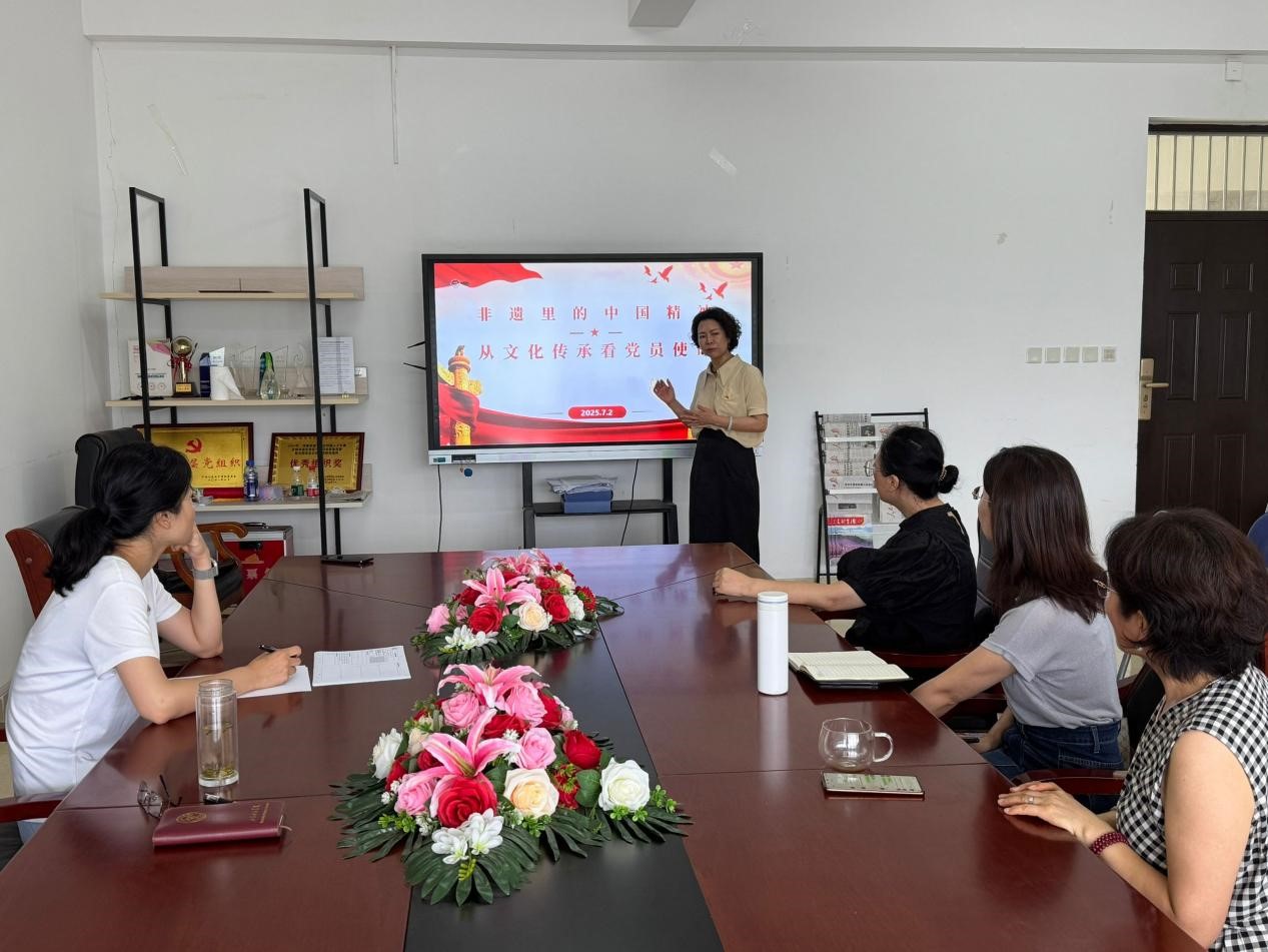 深耕文化传承,筑牢精神根基。党委委员、副院长赵月以“非遗里的中国精神:从文化传承看党员使命”为题,系统阐释文化传承的党员责任。她强调,党员需在非遗保护宣传、传承创新及实践活动中发挥先锋作用,并结合省文化创新奖申报工作,部署成果梳理与目标规划,推动非遗文化与艺术设计专业深度融合。