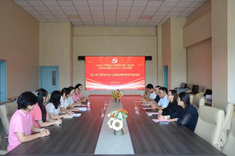 7月25日,会计学院学生第一党支部与济南市长清区马山中心小学党支部联合开展联学共建活动。会计学院党委书记尹衍梅带领学生第一党支部党员赴马山中心小学,与马山教育党总支书记张洪文、马山中心小学党支部书记陈彬及党员教师代表通过理论学习、案例警示、座谈研讨等形式,开展学习交流。