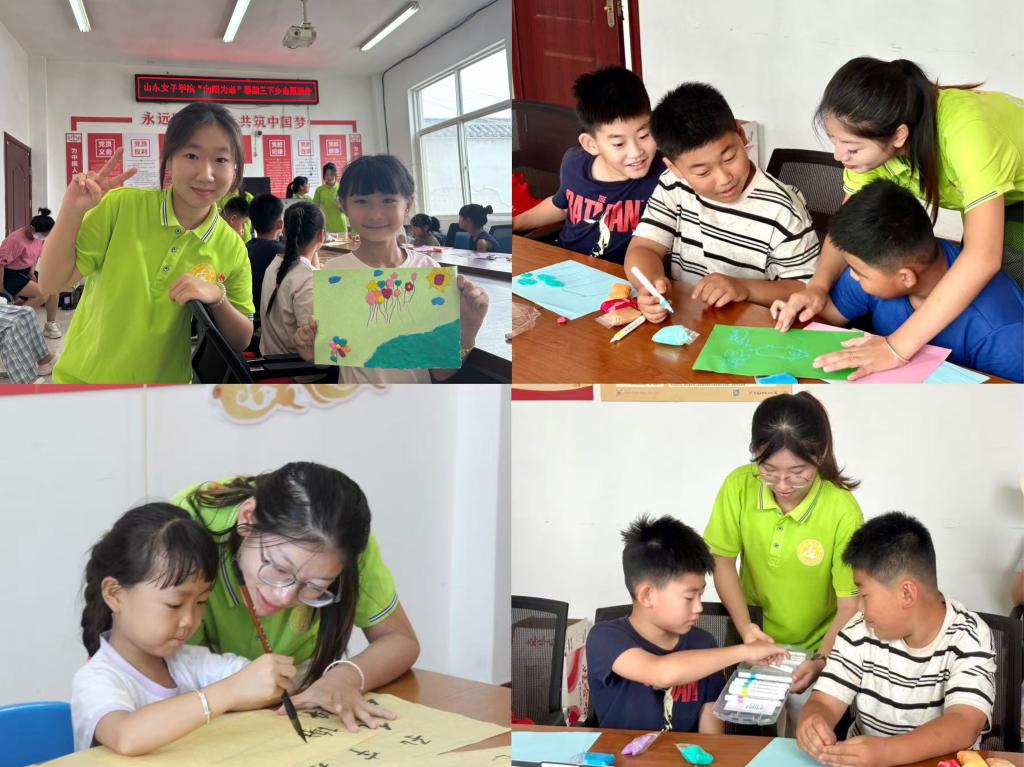 聚焦西仲都村儿童在情绪疏导、安全防护、未来规划等成长过程中的实际需求,团队以“童心向阳?成长护航”为主题,精心设计了情绪认知、防溺水课堂、手工创意、书法体验、职业规划等9项特色活动。“老师,我画的房子会飞,能带着奶奶去北京!”9岁的小雨举着粘土贴画,眼里闪着光。