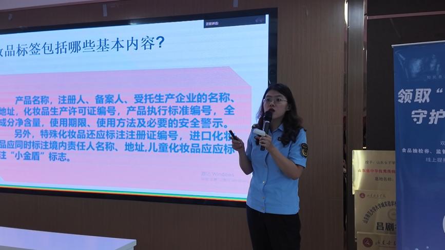讲堂在现场师生热烈的掌声中正式拉开帷幕。长清区市场监管局食品安全协调科负责人孙丽萍从电器安全、电动车安全、食品安全、药品安全等多个维度,结合真实案例与互动问答,向学生们进行了深入浅出的讲解,生动剖析了常见安全隐患,传递了实用的防范知识。随后,长清区检验检测中心崔莎莎现场演示了常见食材的质检方法,并组织在场人员进行现场体验。互动环节中,同学们纷纷踊跃提问,现场气氛十分热烈。