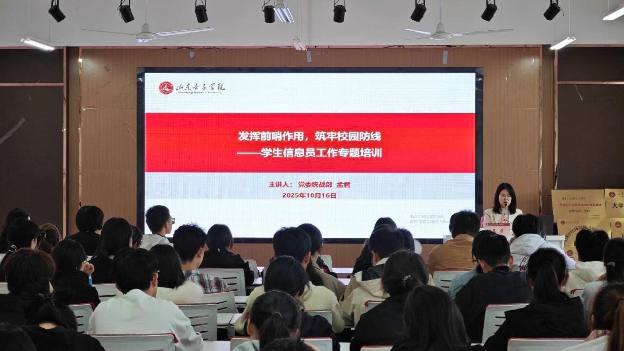 为深入贯彻落实学校统战工作部署要求、筑牢校园安全防线, 10月16日,经济学院党委于求真楼322举办学生信息员专题培训会。学校统战部孟君受邀主讲,学院党委书记齐振花以及2025级学生党员、班长、团支书、宿舍长参加会议,辅导员张艳丽主持。