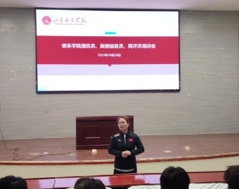为全面加强宣传思想工作队伍建设,10月26日晚,音乐学院在图书馆一楼报告厅举办“三支队伍”专题培训会。学院党委书记曲常军、党委副书记吕梅出席会议,学院全体通讯员、网评员及舆情信息员参加培训。