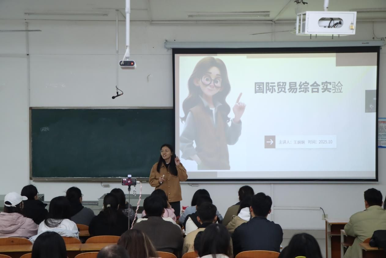 在教学展示环节,王娴娴老师以《国际贸易综合实验》课程导论为主题,从实验教学目标、内容设计及仿真平台操作等方面展开讲解。王老师通过生动的案例和模拟场景,引导学生理解国际贸易实务流程,展现了实验教学在培养学生综合应用能力方面的独特价值。何艺丛老师则围绕《金融学》中的“商业银行资产负债业务”展开授课。她以“T型账户巧分类”为切入点,清晰梳理了商业银行资产与负债的分类与结构,并结合“硅谷银行倒闭”等真实金融事件,深入剖析了资产负债期限错配、利率风险等关键问题。何老师授课逻辑严谨、案例鲜活,注重引导学生从现实问题中理解理论。