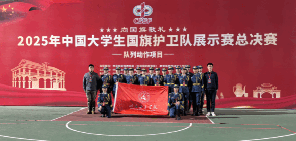 近日,由中国学生体育联合会主办、中宣部宣传教育局(全民国防教育局)、教育部思想政治工作司指导的2025年中国大学生国旗护卫队展示赛(总决赛)在贵州省遵义市奥体中心举行。该赛事分为东、西、南、北四大赛区,我校国旗护卫队从北部赛区的众多队伍中脱颖而出,进入总决赛,与来自全国58所高校的78支国旗护卫队、1400余名学子同台竞技,最终以出色的表现斩获列展示项目二等奖、升旗展示项目三等奖的优异成绩。