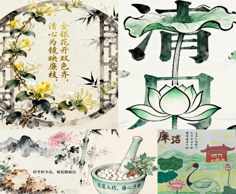创作过程中,教职工们紧扣“药”与“廉”的内在关联,精心甄选莲、竹、黄连、菊花等兼具药性与象征意义的中药材作为创作素材:以莲花“出淤泥而不染”的洁净之姿,喻示教育工作者洁身自好、坚守底线的清廉风骨;借竹子“虚心有节、挺拔向上”的生长之态,彰显为人师表正直谦逊、坚守原则的君子气度;取黄连“味苦性寒、清热燥湿”的药性之质,暗喻甘于清苦、涤荡浮华的廉洁初心;用菊花“凌霜傲寒、淡泊名利”的品性之美,传递不慕虚荣、潜心育人的职业追求。这种寓教于创、融廉于药的特色形式,不仅让教职工在创作中深化了对廉洁内涵的理解,更将清廉基因融入康养育人全过程,为培养德才兼备的康养人才注入源源不断的“廉动力”。