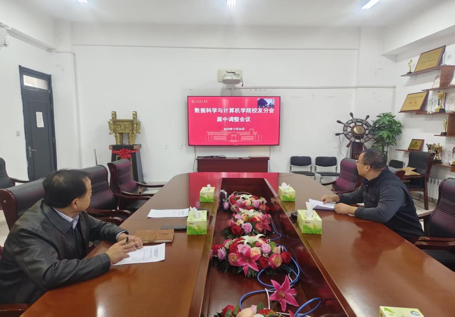 12月26日,数据科学与计算机学院校友分会届中调整会议顺利召开。本次会议采取线上线下相结合的方式进行,确保了各地校友的广泛参与。会议由学院校友分会会长孙洪锋主持,副会长及校友代表通过线上会议参加。