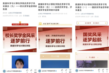 通过官方公众号持续推送国家奖学金、省政府奖学金、校长奖学金获奖者的优秀事迹。内容从专业学习的深耕、学科竞赛的突破到科研实践的探索等多个维度,全方位展现优秀学子的奋进风采。活动以身边榜样的真实成长故事为全院学生树立可感可学的奋进标杆,有效激发了同学们的学习内驱力,让向优而行的氛围蔚然成风。