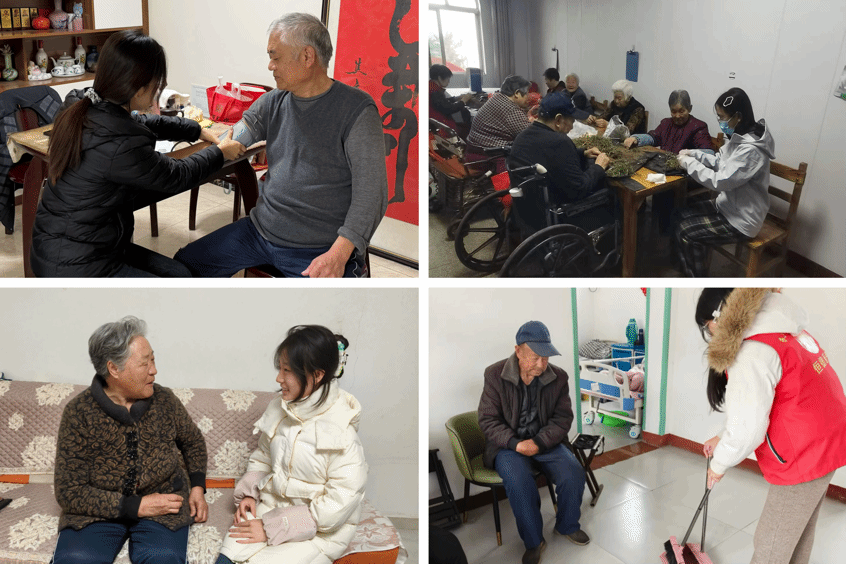 恰逢假期,学院号召学生志愿者立足家乡,走进周边养老院、社区服务中心、康养机构等场所,将专业所学转化为助老实效。志愿者们化身“青春守护者”,为老人们提供健康监测、康复按摩、智能设备使用指导等专业服务,用扎实的专业技能为老年生活增添保障;同时主动打扫庭院卫生、整理房间内务,陪老人们唠家常、忆往昔,用真诚陪伴驱散孤独。一张张青春的笑脸、一次次暖心的服务,让雷锋精神在基层一线传递温暖,成为春日里最动人的风景线,彰显了新时代青年的责任与担当。
