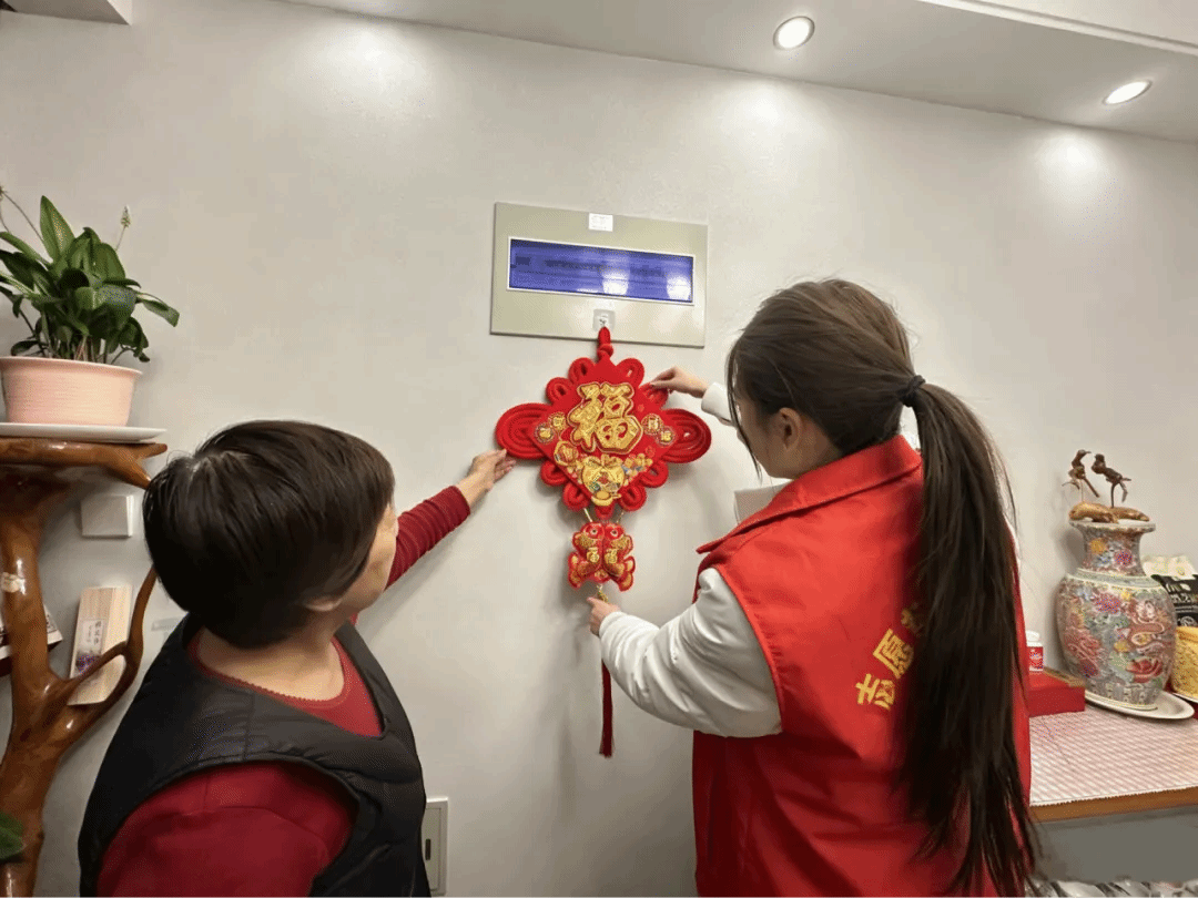 在临沂兰山区景苑社区,舞蹈学专业2023级学生肖国涵参与“新春入户,暖心助老”行动,为高龄、独居老人挂福字、代缴水电费、陪同复诊,以细致服务温暖老人心田。
