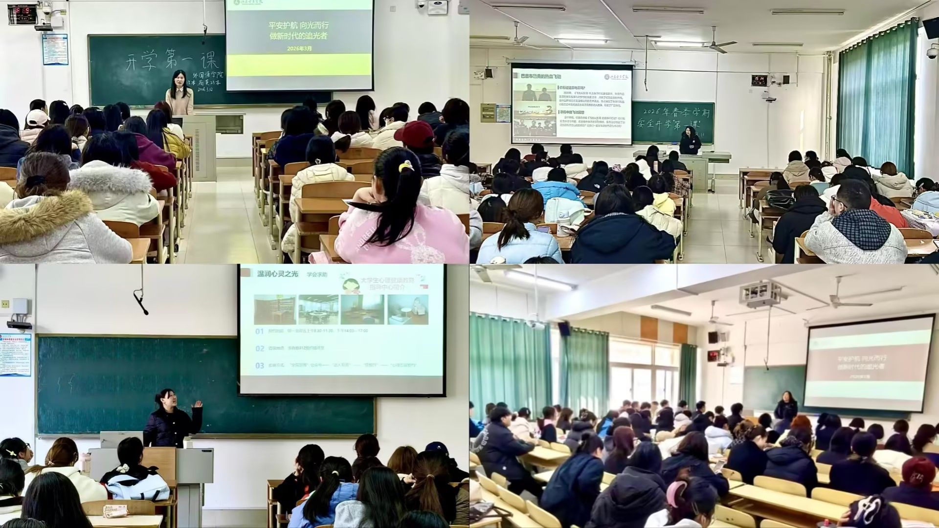 开展开学心理调适指南指导,围绕开学学习适应、社交融入技巧、情绪自我调节三大维度,为学生提供科学实用的心理支持,引导学生正确认识压力、合理调节情绪、积极融入集体;用好多层次心理健康支持网络,有效整合班级互助、学院关怀与学校专业心理服务资源,畅通心理咨询服务渠道,大力倡导主动求助是智慧、是勇气、更是成长的理念,帮助学生以阳光心态从容开启新学期。