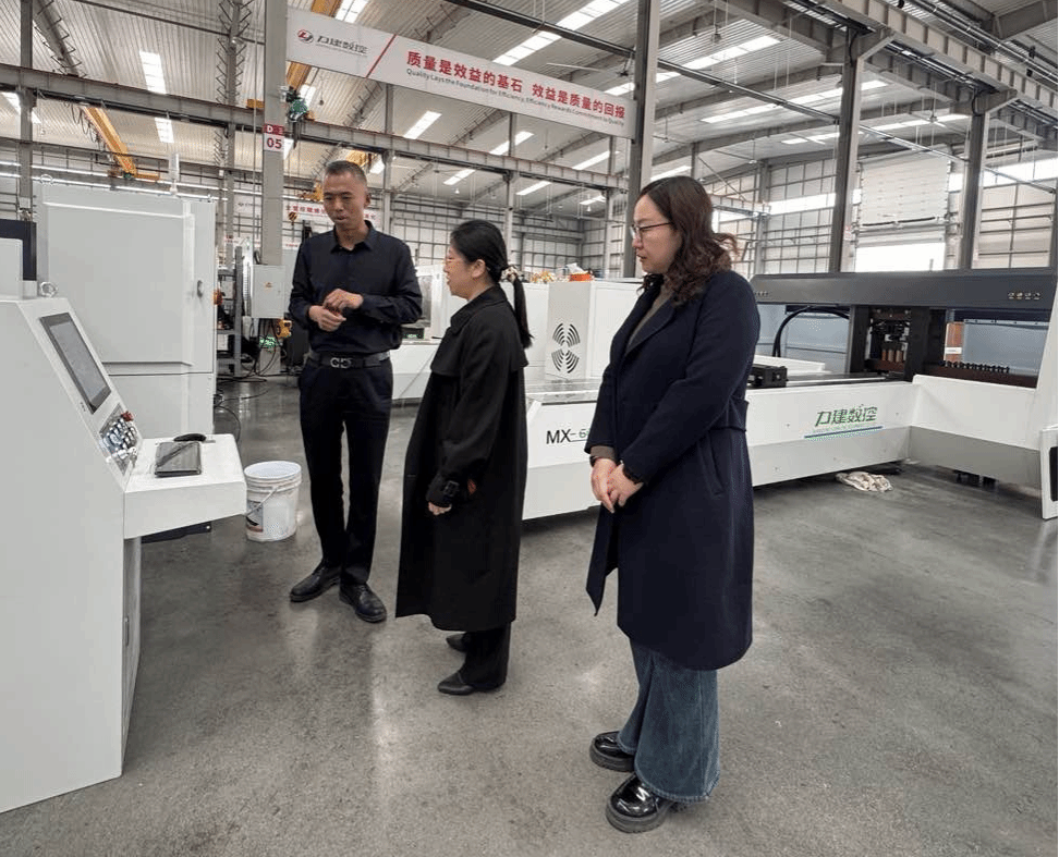 在山东力建数控设备有限公司,学院一行与企业总经理刘建进行了座谈交流,深入了解企业发展现状、用人需求及岗位设置情况,并就校企协同育人、实习实训基地共建等合作方向交换了意见,企业方对学院的人才培养质量给予高度评价。