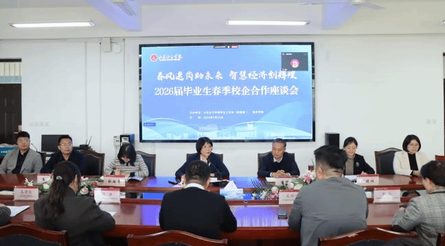 为深入贯彻党中央、国务院“稳就业、促就业”决策部署,积极搭建招聘-就业平台,3月25日经济学院成功举办“春风送岗助未来,智慧经济创辉煌”2026届毕业生春招会暨校企合作座谈会。学校党委委员、纪委书记,省监委驻山东女子学院监察专员杨恩红出席活动,学生工作处、经济学院相关负责人、企业代表参会,会议由学院党委副书记主持。