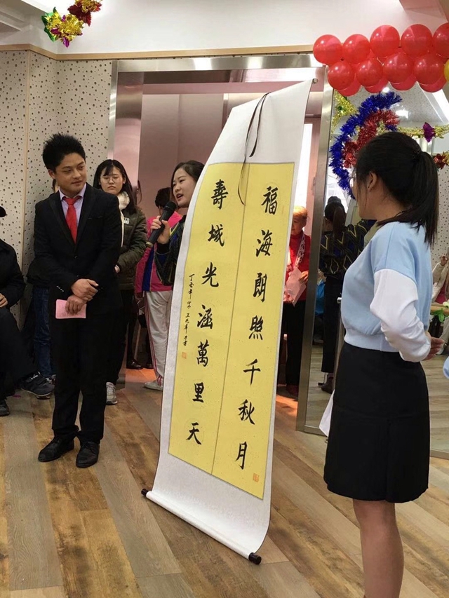本次活动得到了山东女子学院老年服务与管理专业学生的积极响应,既有正在养老服务中心实习的15级学生,也有专程从长清校区赶来的从事志愿服务活动的16级和17级学生,他们不仅参与了联欢会的策划、主持、台前幕后工作,还献上了红歌《打靶归来》和民族舞蹈《沂蒙山小调》等歌舞节目及书法作品,弘扬了中华民族尊老敬老爱老的良好道德风尚,展示了新时代女大学生的活力与激情。